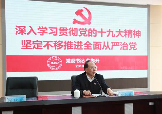 党委书记黄先开在党风廉政建设工作会上做重要讲话,强调要以习近平新时代中国特色社会主义思想为指导,贯彻落实党的十九大精神、中央纪委二次全会部署,深入推进党风廉政建设和反腐败斗争,为事业发展营造风清气正的良好政治生态和育人环境。他从中央要求、首都功能定位要求和学校转型发展要求三个层面分析了全面从严治党、深入推进党风廉政建设严肃性、现实性、紧迫性,强调全校党员、干部要提高政治站位,切实增强全面从严治党的责任感、紧迫感。要强化责任担当,扎实推进学校全面从严治党各项工作。要抓好政治建设,认真把握全面从严治党工作基本要求,狠抓思想引领,强化纪律规矩,落实“一岗双责”,严格监督执纪问责,强化真抓实干、狠抓落实,将各项工作要求和重点任务落到实处。