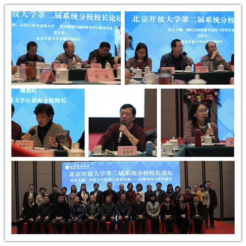 大会举行了“华球平台第二届分校校长论坛”,本届分校校长论坛的主题是:“开放大学转型与系统发展——问题导向与现实路径”。东城分校校长景宝龙以“办好百姓身边的大学、努力创建区域性终身学习服务基地”作为题目,宣武分校校长马铁军以“城区分校的招生困境与转型发展”作为题目,石景山分校校长魏艳红以“上下延伸与生态和谐——谈基础服务”作为题目,延庆分校校长孟庆军以 “主动作为,办人民满意的开放教育”作为题目,现代商务分校校长牛敏杰以“同命运、共发展”作为题目,分别做了主旨发言。与会分校负责人结合市校与分校转型和发展过程中的实际问题,对于前进中的变革与协同进行了深入研讨,并对凝心聚力,探索现实问题路径,共同建设和谐的系统生态环境达成了高度共识。