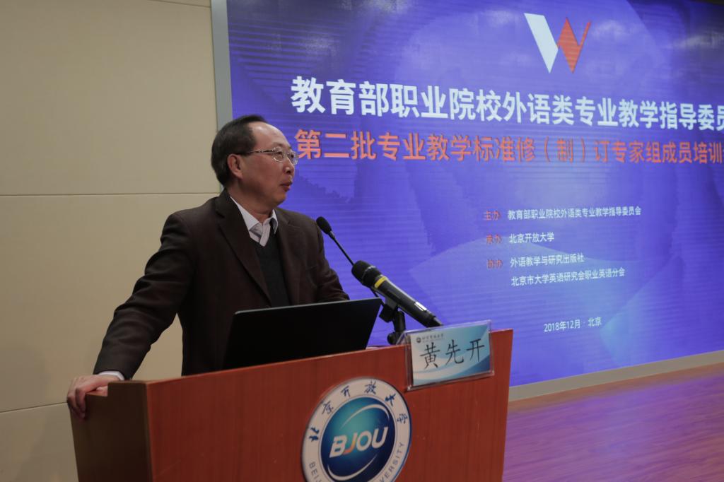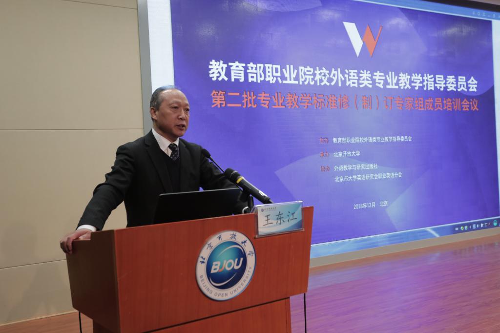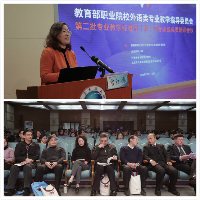 12月8日,教育部职业院校外语类专业教学指导委员会第二批专业教学标准修(制)订专家组成员培训会议在我校召开。本次培训会议由教育部职业院校外语类专业教学指导委员会主办,华球平台承办,外语教学与研究出版社和北京市大学英语研究会职业英语分会协办。