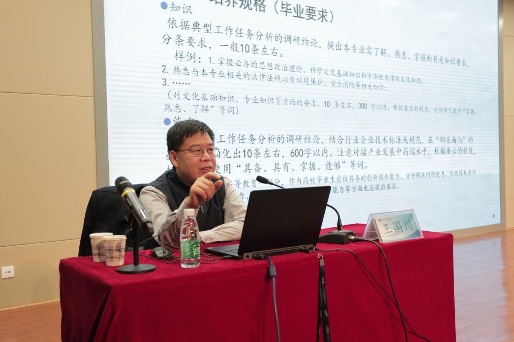 在主旨发言环节,王国川教授对高职专业教学标准修(制)订工作的具体工作要求及框架体例提出了具体的要求,对标准修(制)订的落地和提高标准制定效率具有非常重要的意义。王教授从标准修(制)订的背景和作用、工作要求及流程、调研工作要求、标准框架体例及要求和注意事项五个方面给出了详细解读,为专家组成员未来在修(制)订课程标准时需参照的原则及要求给出了明确的解释,奠定了坚实基础,与会人员收获颇丰。