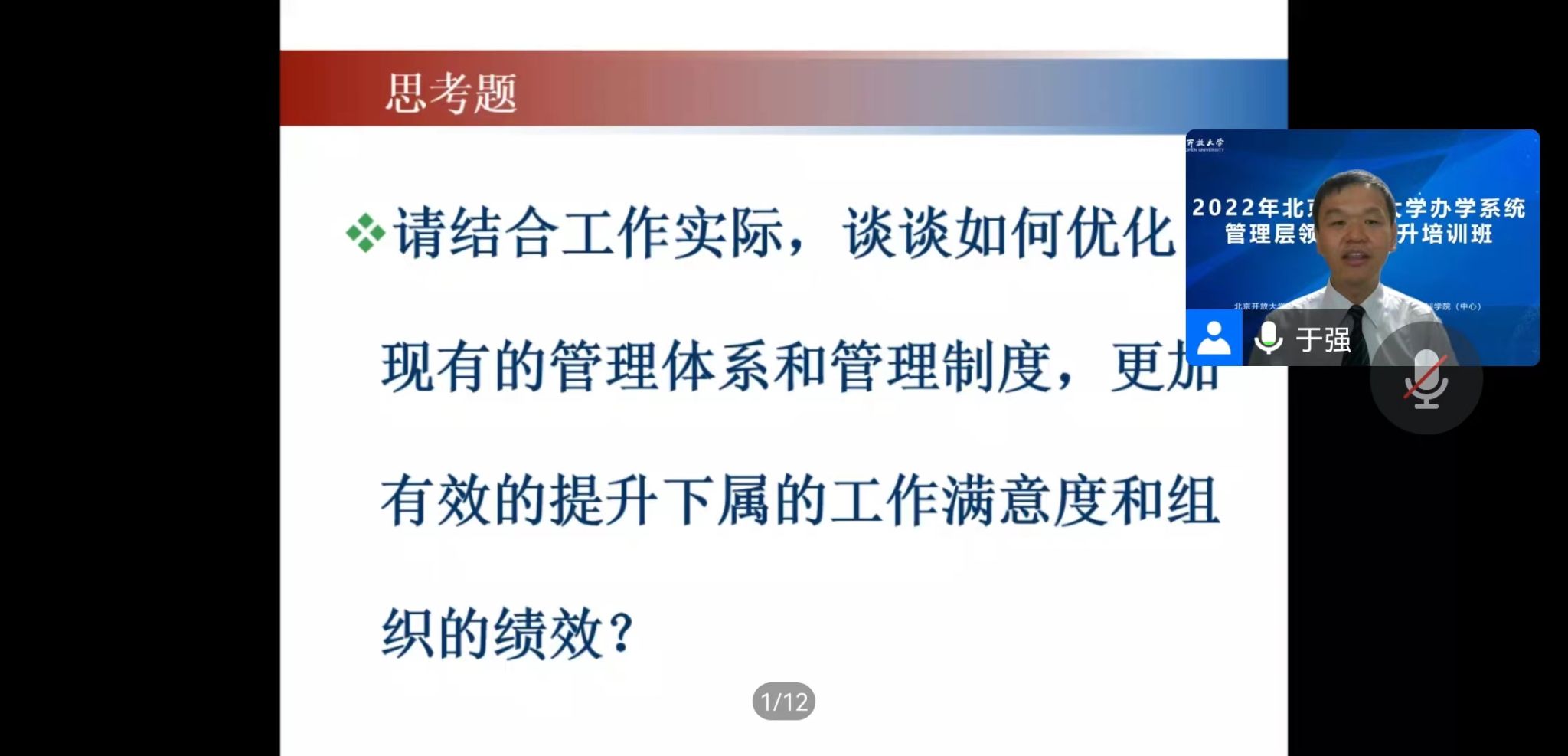 为全面落实教育部《关于办好开放大学的意见》战略部署,加强我校办学系统建设,紧紧围绕学校十四五规划工作重点,培养一批专业化、高水平管理队伍,奋力开创办学系统建设新局面,学校于9月16日至29日,举办了办学系统管理层领导力提升培训。