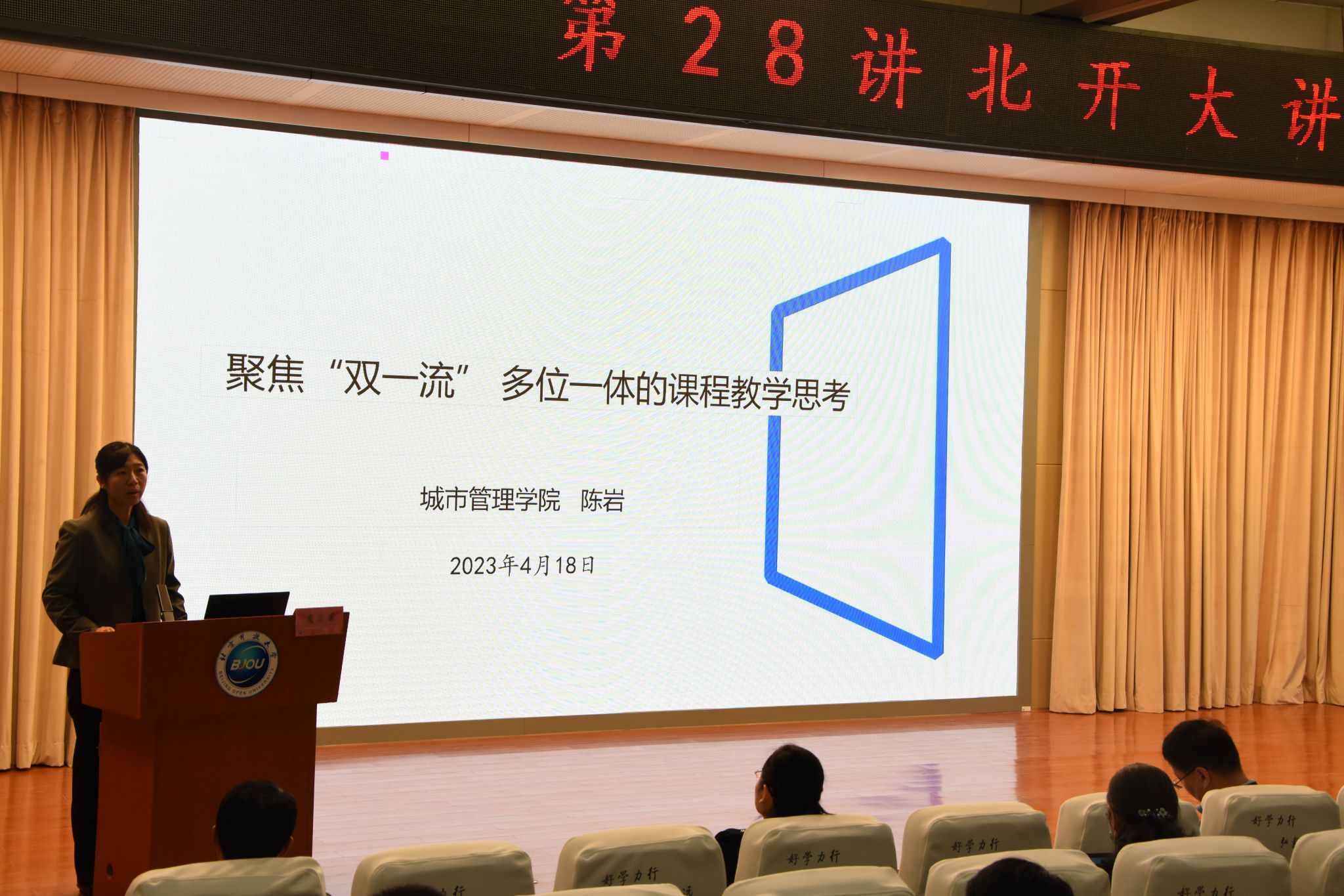 城市管理学院教授陈岩做了题为“聚焦‘双一流’多位一体的课程教学思考”的专题发言,她从宏观政策、到现实需求、再到教学问题,介绍了“双一流”建设的必要性,并聚焦《公共危机管理理论与实务》课程的教学实践,分享了将标准落实到具体实践的思路与举措。