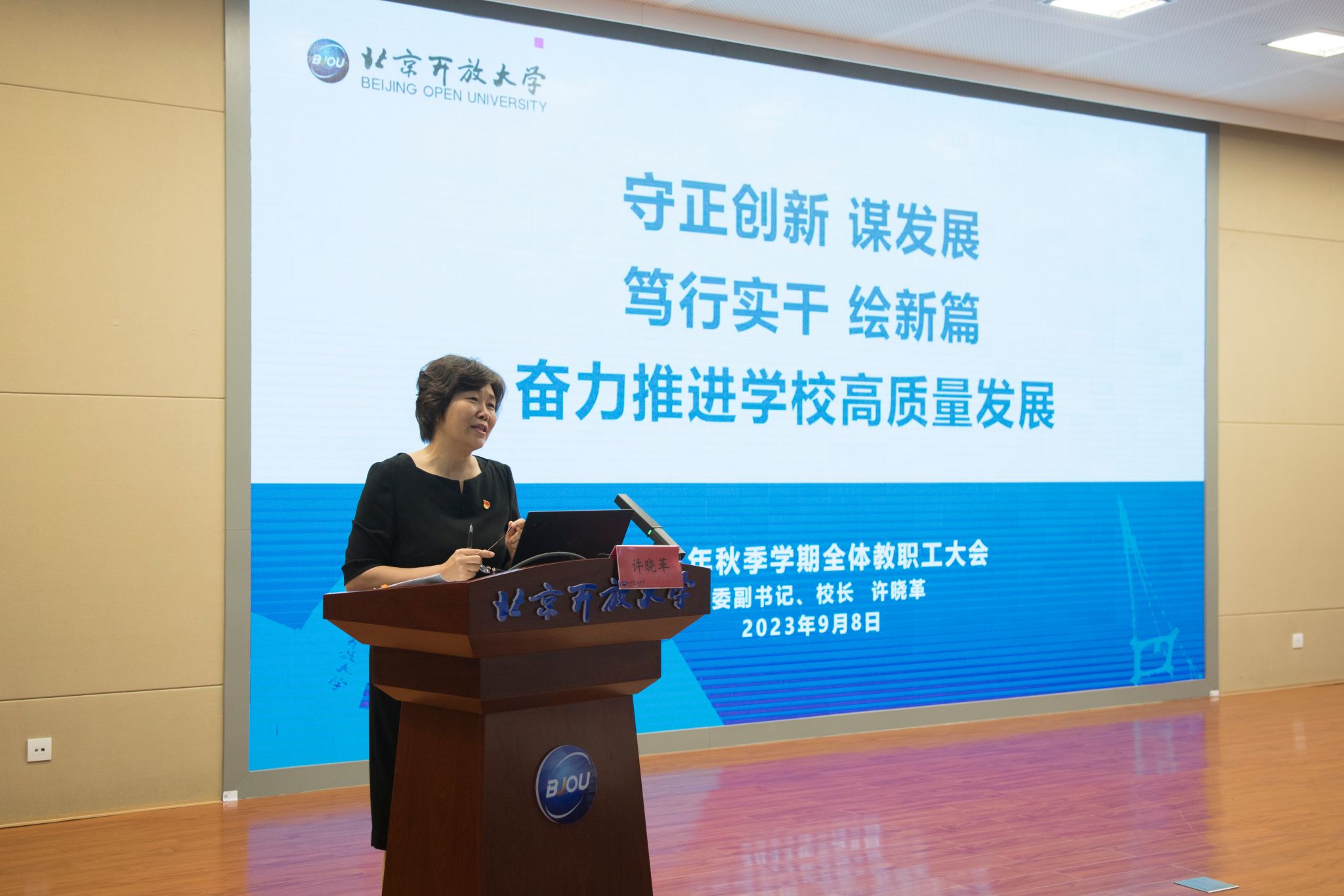 许晓革指出,当前学校正处在加快一流开放大学建设,推进开放教育高质量发展的关键时期。开放教育进入调整、规范、改革、重组时期,既是发展机遇,也带来一定的挑战。全体教职工要进一步认清当前形势,抢抓发展机遇,积极主动谋划,勇于承担重任,将思想统一到学校党委发展理念和决策部署上来,推动学校各项工作任务落地落实。