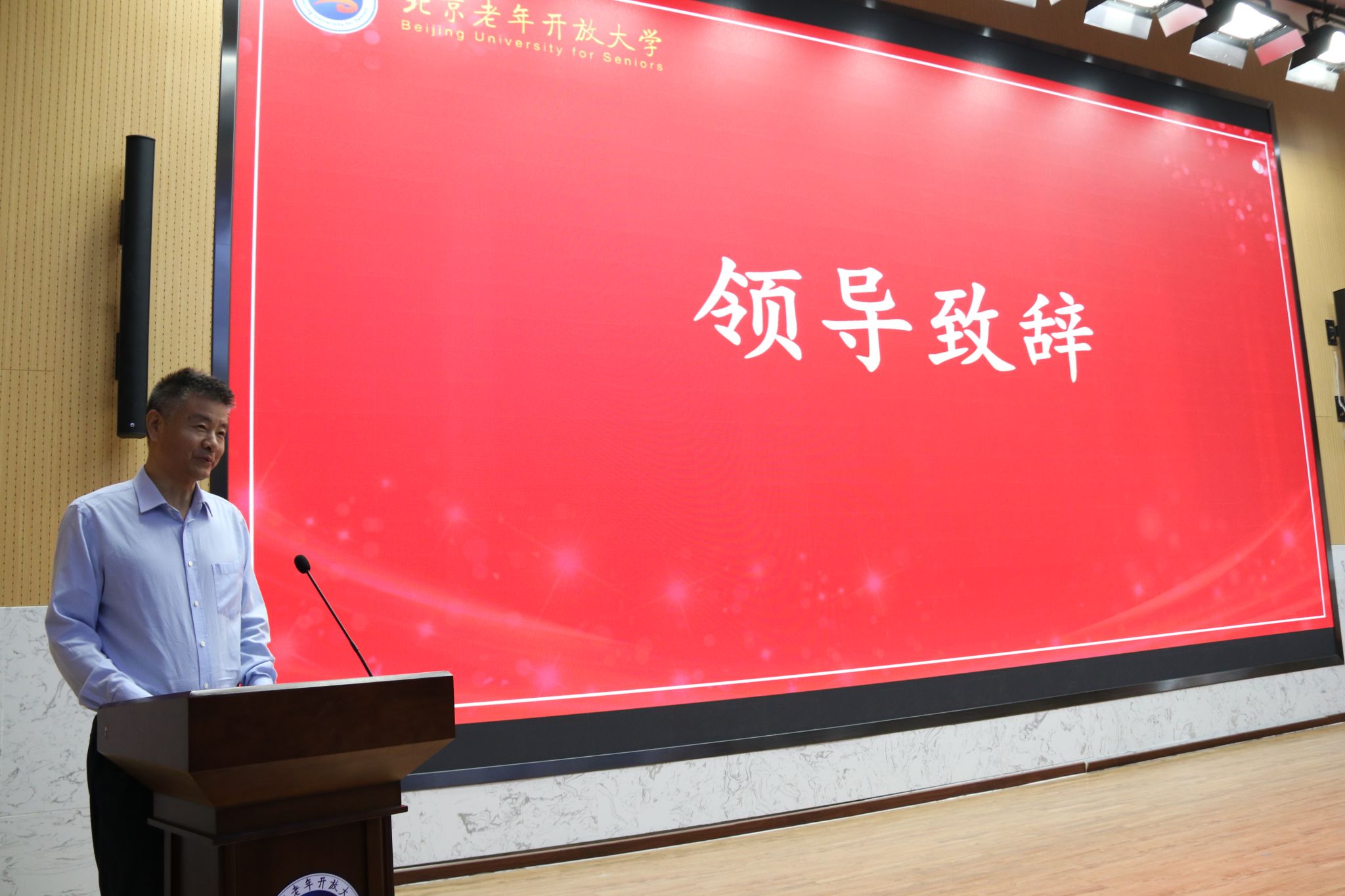 9月26日上午,北京老年开放大学2023年秋季开学典礼在西直门校区举行,学校党委委员、副校长王想年出席典礼并致辞,2023年秋季班全体学员、教师代表参加典礼。