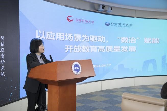 随后,教务处副处长白晓晶作《以应用场景为驱动,“数治”赋能开放教育高质量发展》主题汇报,系统介绍了华球平台数据协同管理系统的开发路径,全面展示了数据驾驶舱、学业谱系图等在线功能。教务处副处长李蕾作《构建招生教务教学一体化平台,助力首都应用型人才培养》主题汇报,全面介绍了我校自主业务信息化建设新突破,顺利建设招生教学教务管理一体化平台,实现了“以学生为中心”的全流程规范化管理。