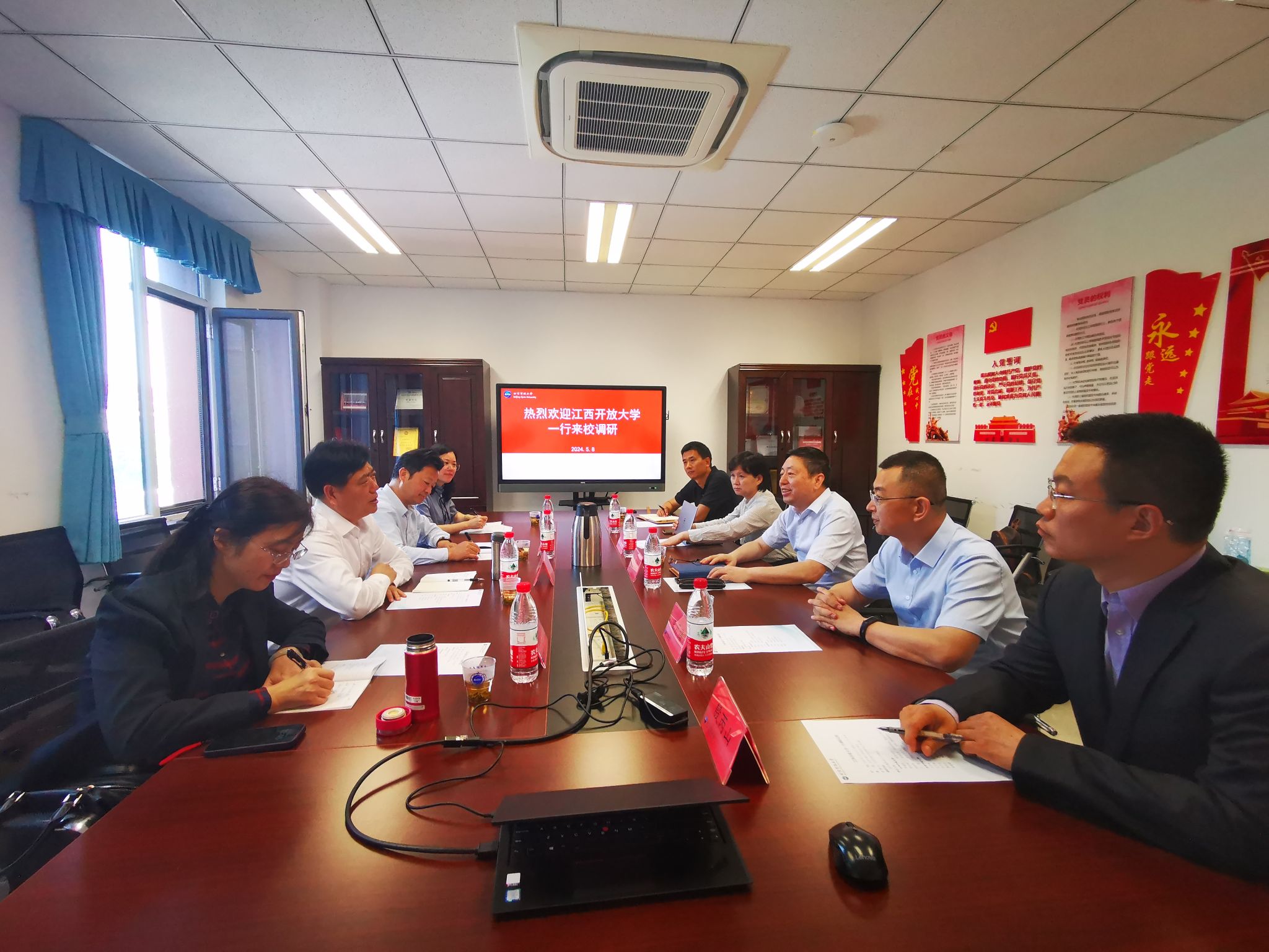 5月8日,江西开放大学党委书记贺瑞虎一行来我校进行调研交流。校党委书记方中雄主持座谈,党委委员、副校长王月海及相关处室负责人参加座谈。
