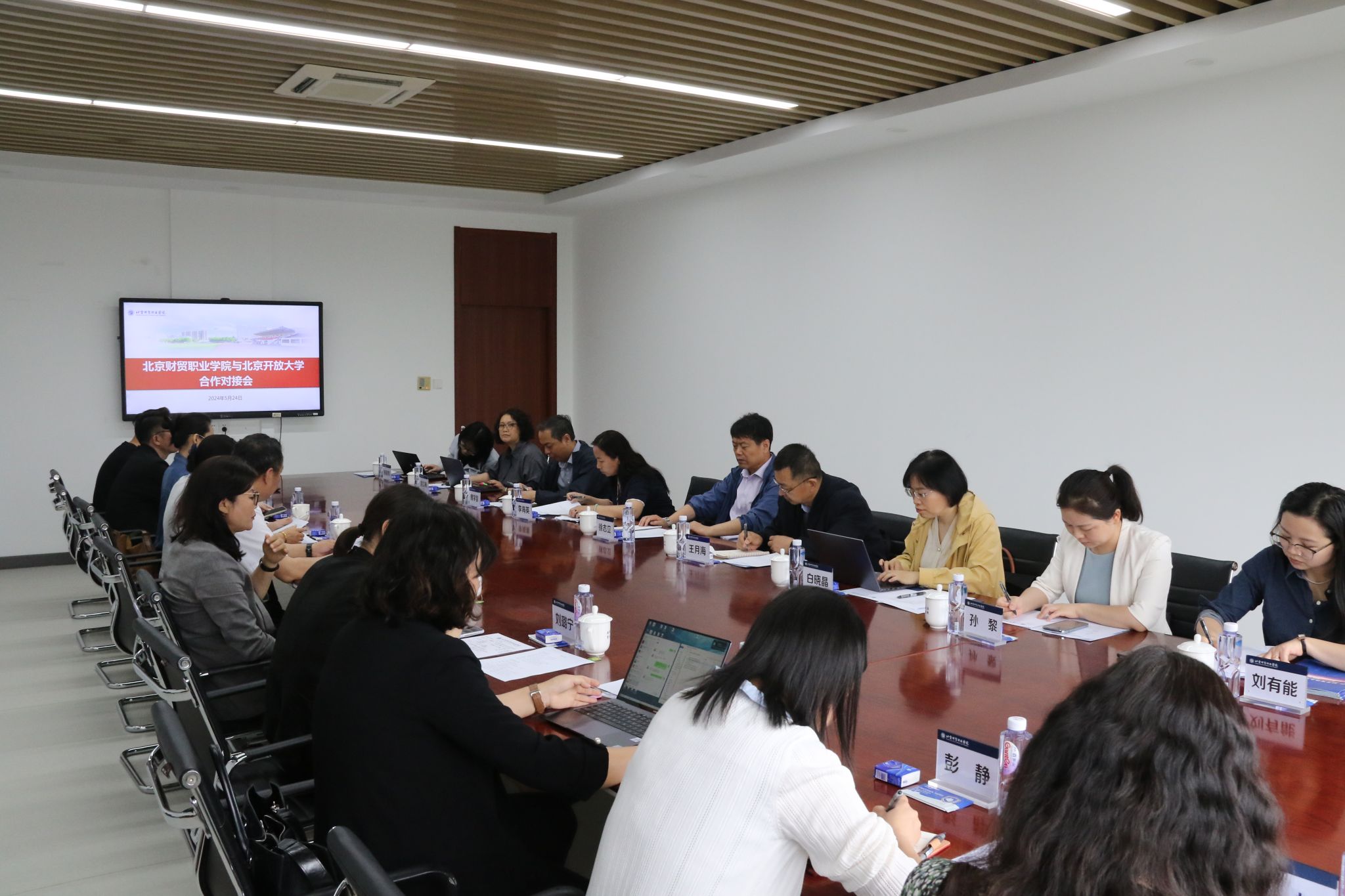会前,王月海一行参观了北京财贸职业学院专业实训室及整体办学环境,随后双方举行了合作对接会。