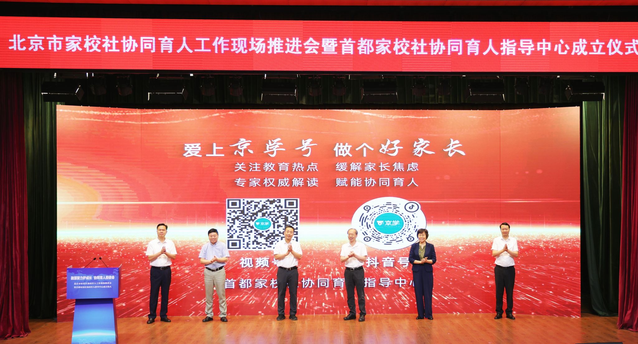 随后,田祖荫司长、王攀主任、方中雄书记、许晓革校长、王佑明区长、周林主任共同启动北京市协同育人“京学”视频号。