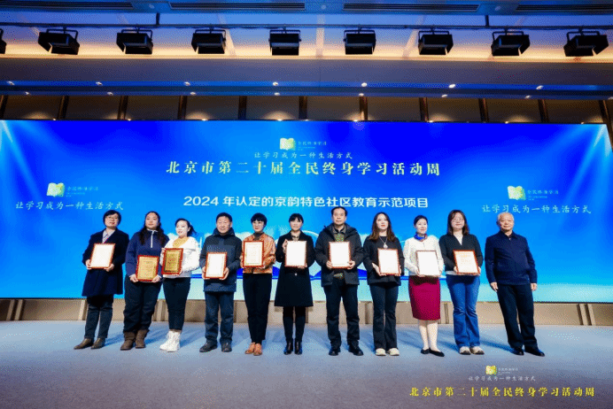 2024年,学校在覆盖全市的社区教育、学分银行、老年开放大学服务体系中有效发挥统筹引领作用,坚持市、区协同联动,积极发挥体系办学优势,组织各区、各单位举办各类终身学习活动,评选出33个京韵特色社区教育项目、10个北京市学分银行优秀试点单位、23个北京市老年学习示范校(点)、99个新时代老年学习共同体。