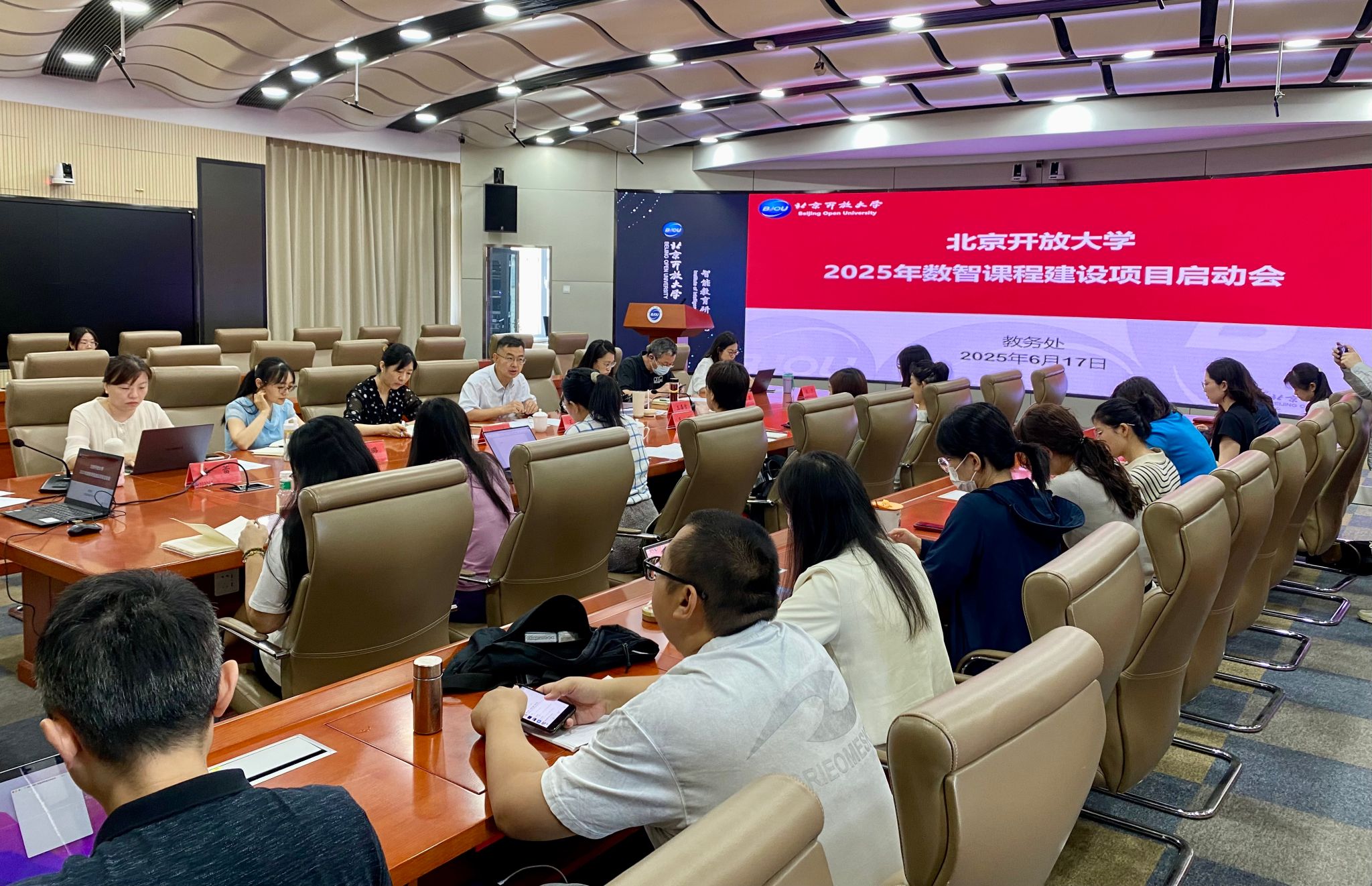 王月海对数智课程建设项目动员讲话,他指出数智课程建设是学校人才培养的重要抓手,也是加快推进智慧教学的关键。他对本项目实施提出三点要求:一是各学院要高度重视数智课程建设工作,以新理念打造更多具有高阶性、创新性、挑战度的一流课程,不断提升人才培养质量;二是各课程团队要积极探索人工智能技术赋能课程建设,通过游戏化、项目式教学等方式,为成人学生打造更具竞争力、贴合未来职场需求的个性化学习路径。三是各单位要加强项目管理,有计划、有步骤开展课程建设工作,教务处发挥好项目统筹作用,学院带领课程团队发挥建设主导作用,中标公司要做好课程建设服务,各方通力配合,努力建设一批高质量的智慧课程。