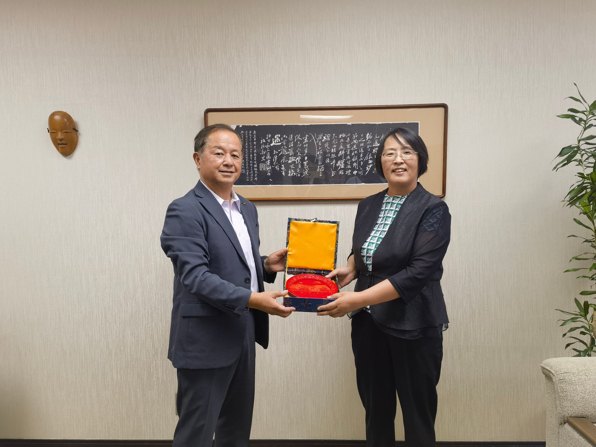张晓红代表学校给日本放送大学赠送礼物