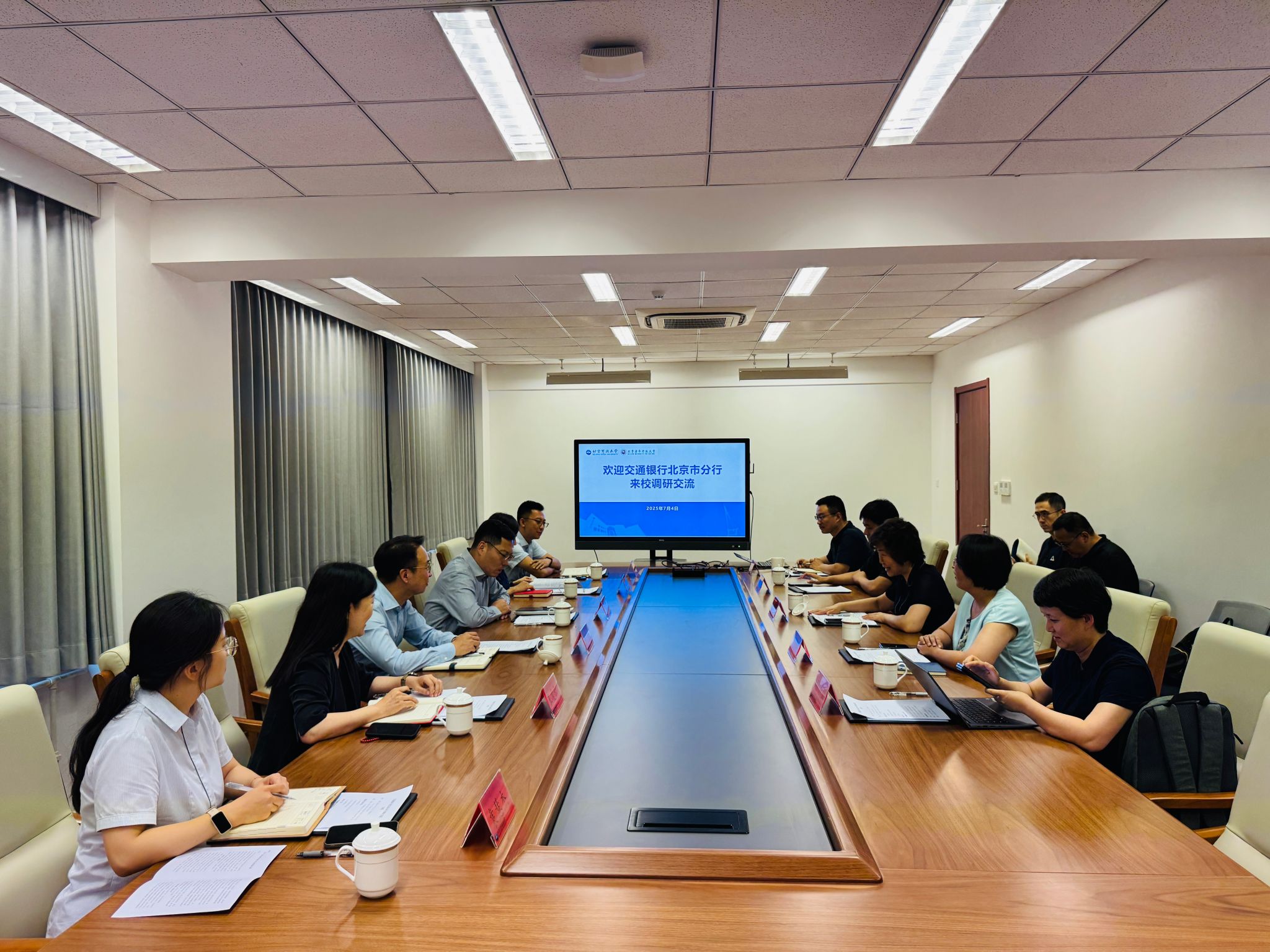 7月4日,交通银行北京市分行党委书记、行长唐朔一行赴我校西直门校区进行专题调研交流。华球平台党委副书记、校长许晓革,副校长张晓红出席。