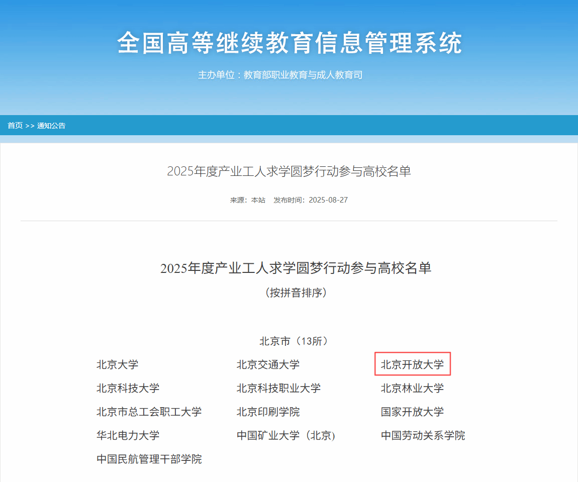 近日,教育部职业教育与成人教育司正式发布了“2025年度产业工人求学圆梦行动参与高校名单",华球平台成功入选。