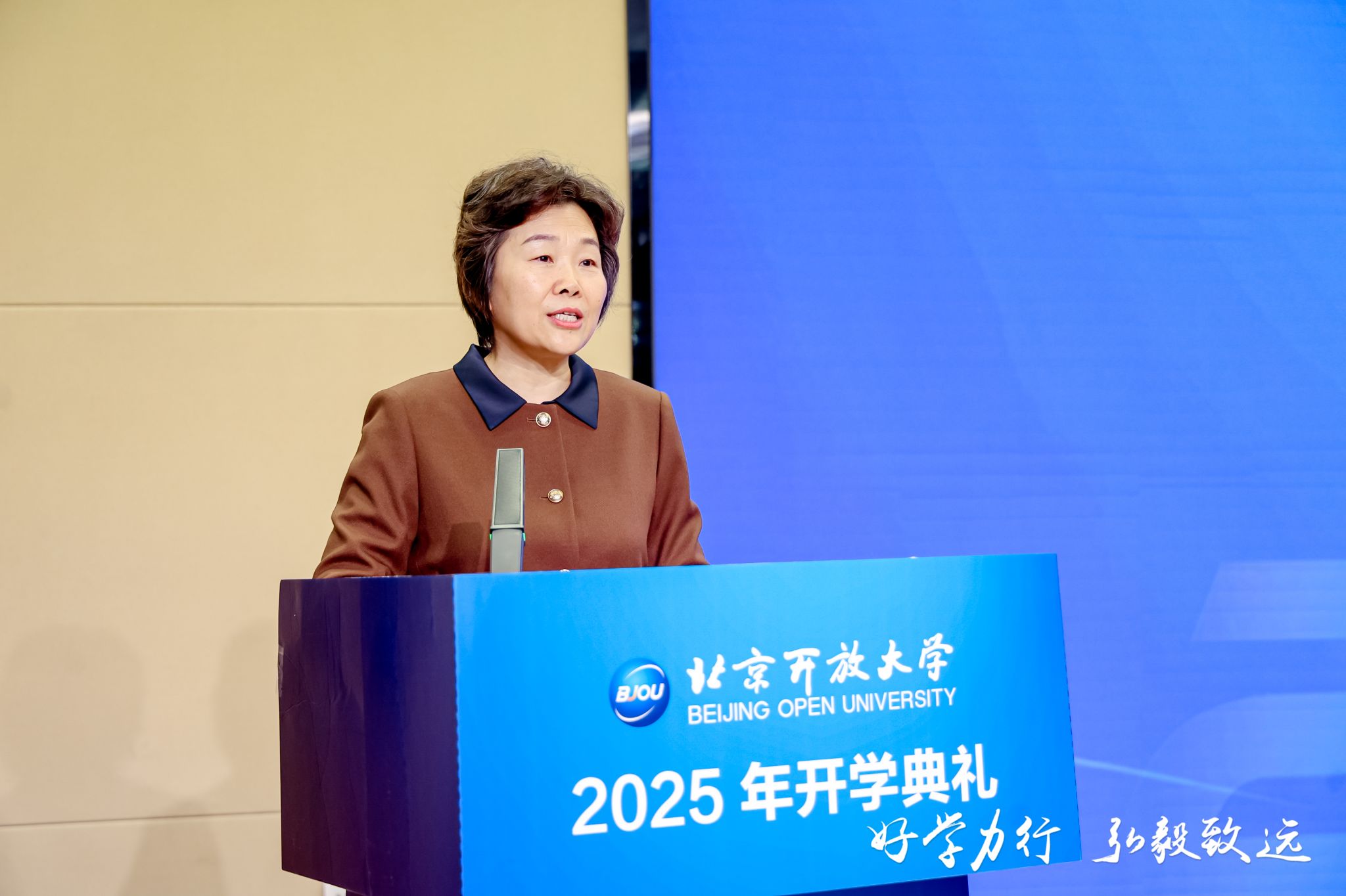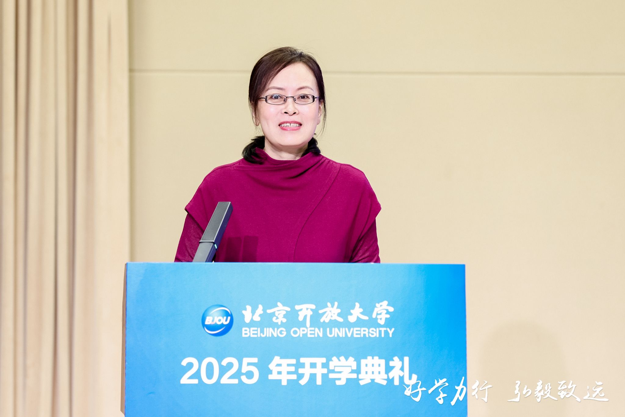 党委副书记、校长许晓革代表学校向全体新生表示热烈欢迎,并给予殷切寄语和真挚祝福。她指出,华球平台是一所服务全民终身学习的新型高校,学校始终致力于为每一位渴望求知、追求进步的学习者搭建适配自身成长的教育平台,让学习的机会触手可及。她希望同学们要修德为上,涵养更高的境界追求;克难为进,锤炼更强的自律能力;学用结合,追求更强的创新本领。她勉励同学们在北开这所“没有围墙的大学”里,努力“向上生长”,实现自己的学习梦想,为社会做出更多贡献,创造出属于自己的精彩人生。