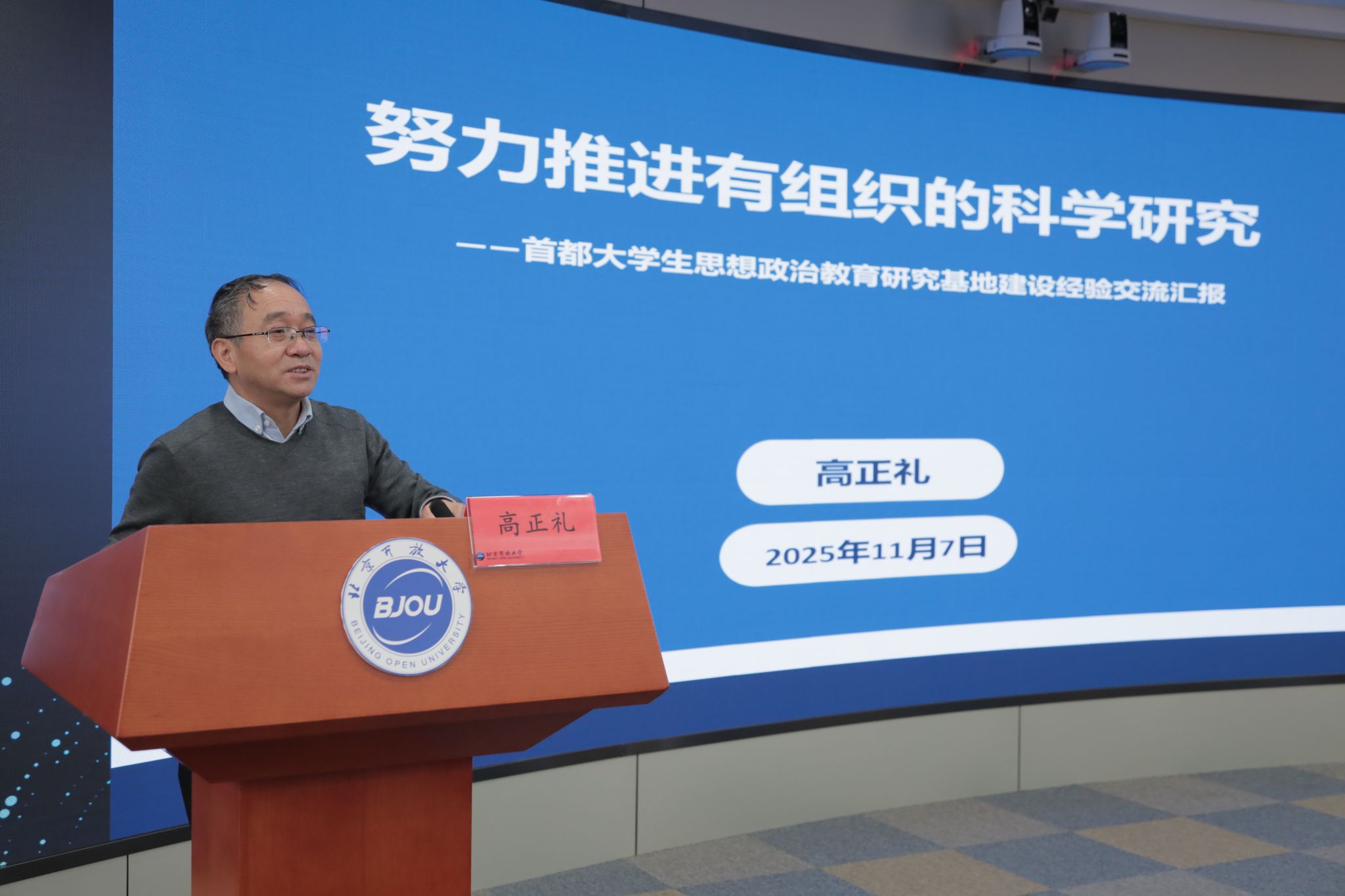 北京交通大学首都高校大学生思想政治教育研究基地首席专家高正礼教授重点分享了基地通过构建“三位一体”协同创新平台,有效整合学术资源与实践场域,创新“三维融合”机制,形成“基地出题、学科答题、流动站孵化”的链条式人才培养与科研产出模式,精准提升基地的决策影响力、学术影响力和社会影响力。