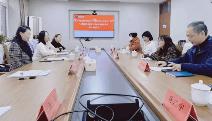 交流研讨阶段,双方围绕“AI赋能职业教育与开放教育融合发展”主题展开热烈讨论。培训学院副院长魏学智介绍了培训学院在职业培训、教师教育、国际教育、家校社协同育人等领域业务开展情况;程云艳教授表示,AI赋能职业教育与开放教育在优化专业布局、重构课程体系、创新人才培养模式等方面要互相优势互补持续发力,深入推动人工智能赋能职业教育与开放教育融合发展与变革,实现职业教育与开放教育的双向赋能。