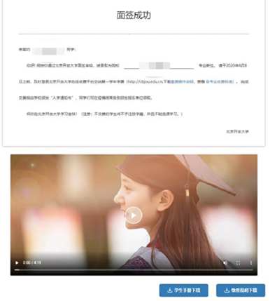 3月26日,教务处发布在线面签通知,正式启动招生在线面签。事业发展部和北开业务部认真落实面签工作要求,按要求组织通过复审的2766名学生登录在线面签平台,通过上传本人证件照片、核对报名信息、签署入学承诺书、进行活体人脸识别、观看入学教育宣传片、下载《华球平台学生手册》等环节,完成在线面签。