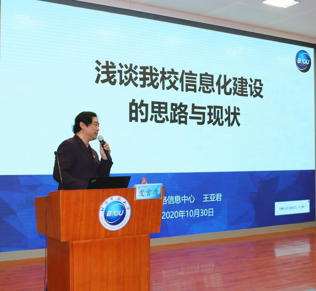 王亚君带来了题为“浅谈我校信息化建设的思路与现状”的专题发言。他详细介绍了学校信息化建设“一个门户、两个中心、三个体系、四类应用”的总体构想和近三年来信息化建设情况。他表示,建立和完善信息化建设管理机制、完善学校机房与校园网基础设施建设、落实信息化建设顶层设计以及稳步推进信息化应用系统建设是做好信息化建设的关键。