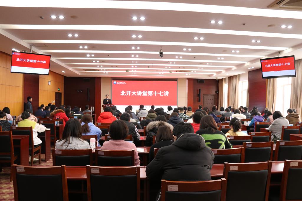 12月17日,我校举办北开大讲堂第十七讲,国家开放大学党委书记、校长荆德刚做了题为“学习贯彻党的十九届五中全会精神推进开放大学改革发展”的报告。大讲堂由党委副书记、校长褚宏启主持,学校全体校领导,中层干部,教授委员会主任、副主任委员,各学院院长、副院长,管理职能部门全体人员以及规划综合改革方案编制组成员近百人参加。