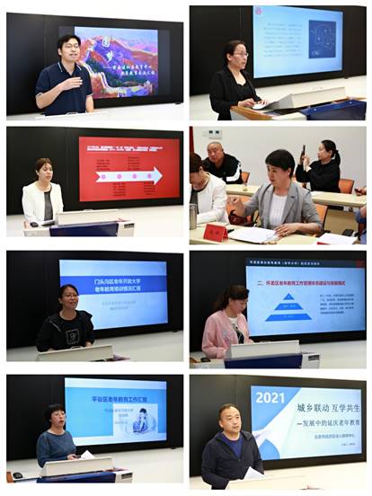 各区老年开放大学校长以鲜活的实践案例,分享了各自在发展老年教育中取得的成绩、经验和思考。北京老年开放大学负责人围绕北京老年开放大学的工作职能定位、工作进展进行主题发言,并结合“智慧助老”等专项行动计划介绍了2021年的工作设想。随后与会人员围绕全市老年教育的历史与现状、存在的主要问题、未来发展建议等方面进行了深入的交流。