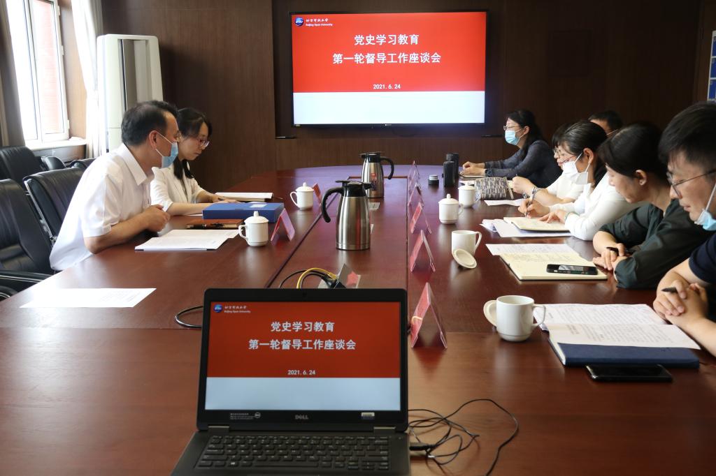 党委书记杨公鼎汇报了学校党史学习教育开展情况,指出,学校党委在党史学习教育开展过程中,切实加强组织领导,及时跟进上级最新文件要求,切实做到部署落实周密细致,规定动作不折不扣,亮点特色突出鲜明,融入日常抓住经常,实践成果落地见效。在学习教育中,落实规定动作、创新形式载体、激发党支部活力;在“为群众办实事”实践中体现知行合一,努力在推进学校高质量发展上见成效,在改进工作作风上见成效,在办实事解难事上见成效,在提升党建工作水平上见成效。在下一步学习教育中,党委将认真学习领会中央、市委精神,按照计划进一步落实“严”和“实”要求,着力在学上下功夫,在悟上下功夫,在做上下功夫,在促上下功夫,在督上下功夫,组织全校党员认真学习领会习近平总书记在“七一”庆祝大会上的重要讲话精神,发扬优良传统,以奋发的精神推进首都人民满意的新型大学建设,以实际行动和优异成绩迎接建党100周年。
