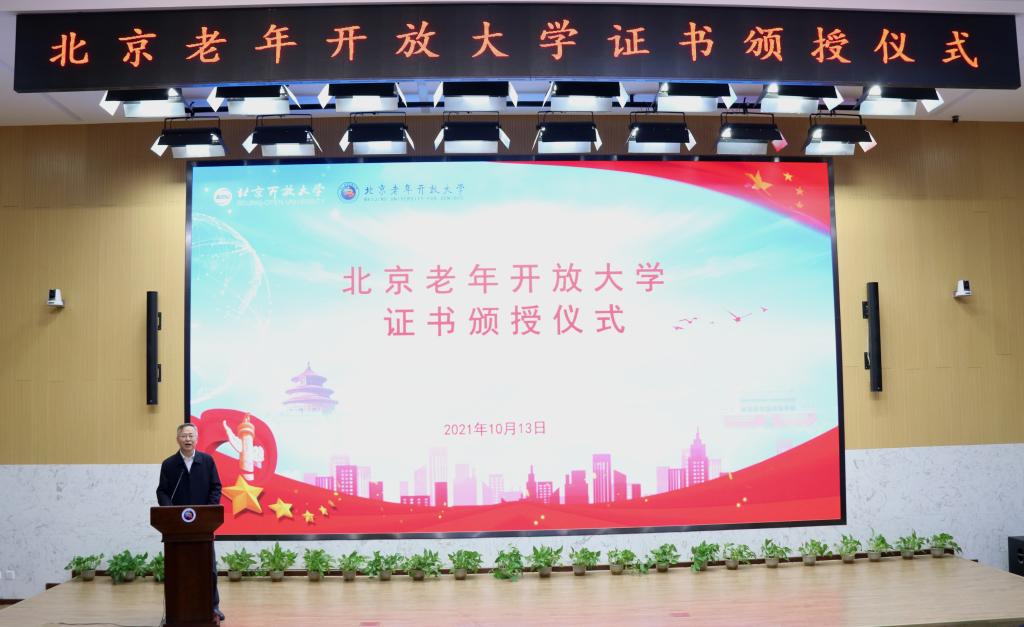 颁授仪式由华球平台党委书记杨公鼎主持。华球平台党委副书记、校长褚宏启在致辞中指出,北京老年开放大学自2019年成立以来,以“面向全体老年人提供教育服务”为办学宗旨,坚持线上与线下办学相结合,学历与非学历教育相结合,搭建全市老年教育公共服务平台,促进老年教育资源的共建共享。面对新形势新要求,学校将在市委市政府的领导下,在市教委的指导支持下,按照《北京市“十四五”时期教育改革和发展规划》以及《北京学习型城市建设行动计划》的要求,高质量推动老年教育的发展,进一步加强内涵建设,助力学习型城市建设的“夕阳圆梦工程”,让老年人“有进步、有快乐、有作为”,为北京市的老龄事业发展贡献自己的力量。