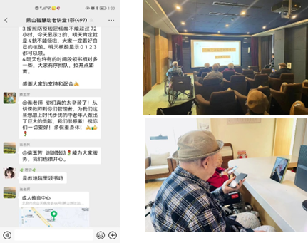 针对老年公交卡与健康宝关联升级困难、影响老年人正常乘车的问题,北京老年开放大学联合华为科技有限公司、链家公益基金等单位,通过微信群、视频直播等形式,组织教师及志愿者为燕山地区、顺义老年大学等开展线上智慧助老活动,讲解公交卡升级、健康宝核酸检测查询以及网上买菜、挂号、生活缴费等实用内容,服务老年学习者。