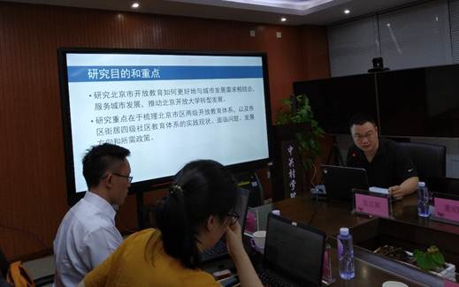 殷丙山副处长汇报了第三子课题——“城教融合”背景下的开放教育研究进展。