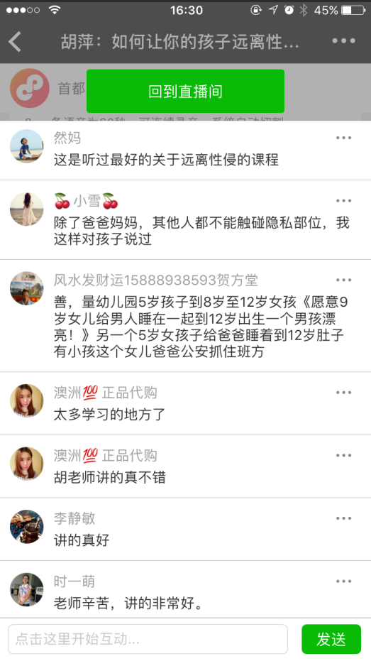 (图为课程截屏及胡萍老师讲课过程中听众们的互动留言)