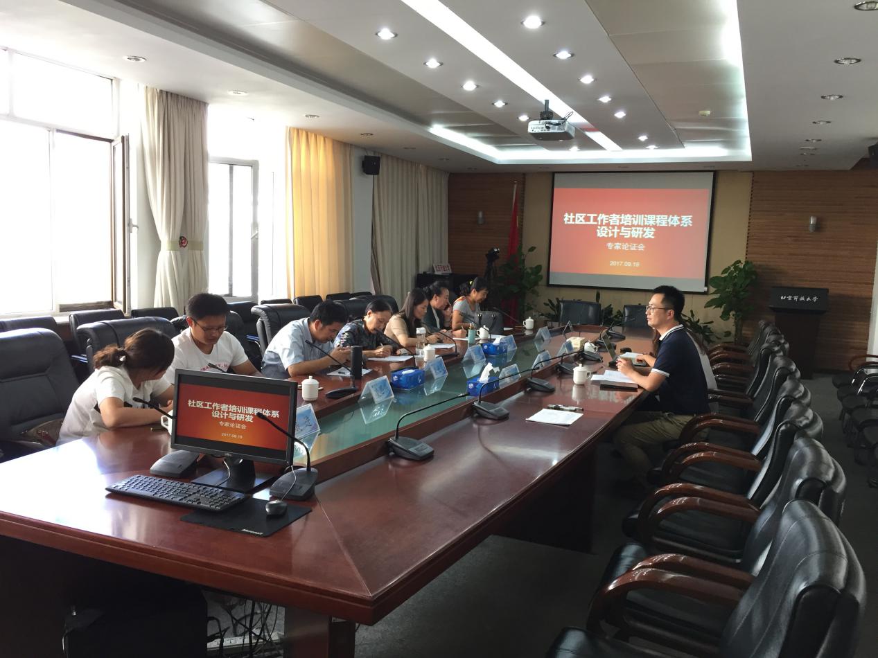 2017年9月19日下午,我院在1号楼401会议室召开了社区工作者培训课程体系设计与开发专家论证会。会议邀请了来自中国劳动关系学院、北京政法职业学院、北京青年政治学院、民政管理干部学院、华球平台的专家学者以及来自一线社区的领导干部,对我院项目组通过前期调研得到的社区工作者培训课程模块进行论证,提出了宝贵的意见和建议。我院高勤丽院长、国兆亮博士、于舒洋博士出席了此次会议。高院长对各位专家的到来表示感谢,并期待通过此次会议建立起长期沟通机制,充分利用开放大学自身的优势、整合学界专家的理论方法、借鉴一线工作者的丰富经验,把社区工作者的教育纳入到社区教育指导中心的一项重要工作,建立起真正符合社区工作者需求的、具有特色的培训课程体系。