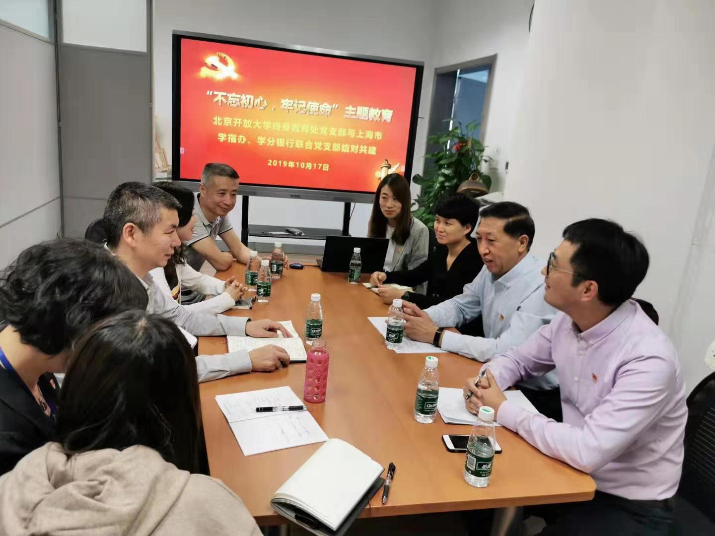 结合正在进行的“不忘初心、牢记使命”主题教育,以此次调研为契机,终身教育处党支部和上海开放大学学指办、学分银行联合党支部举行了结对共建仪式。双方支部将以服务市民终身学习为使命,以学分银行建设为核心、以远程互访为途径,充分发挥党支部战斗堡垒作用和党员模范先锋作用,努力实现思想共建、党务共建、业务共建和文化共建,从而为京沪两地学习型城市建设及市民终身学习做出更大的贡献。