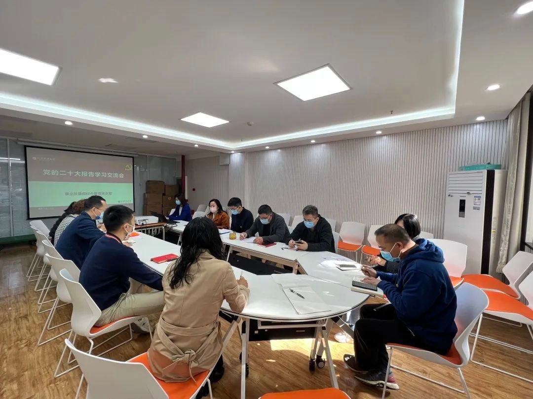 10月18日上午,事业发展部综合管理党支部组织全体党员、党外知识分子、民主党派成员和入党积极分子召开了“党的二十大报告学习交流会”。