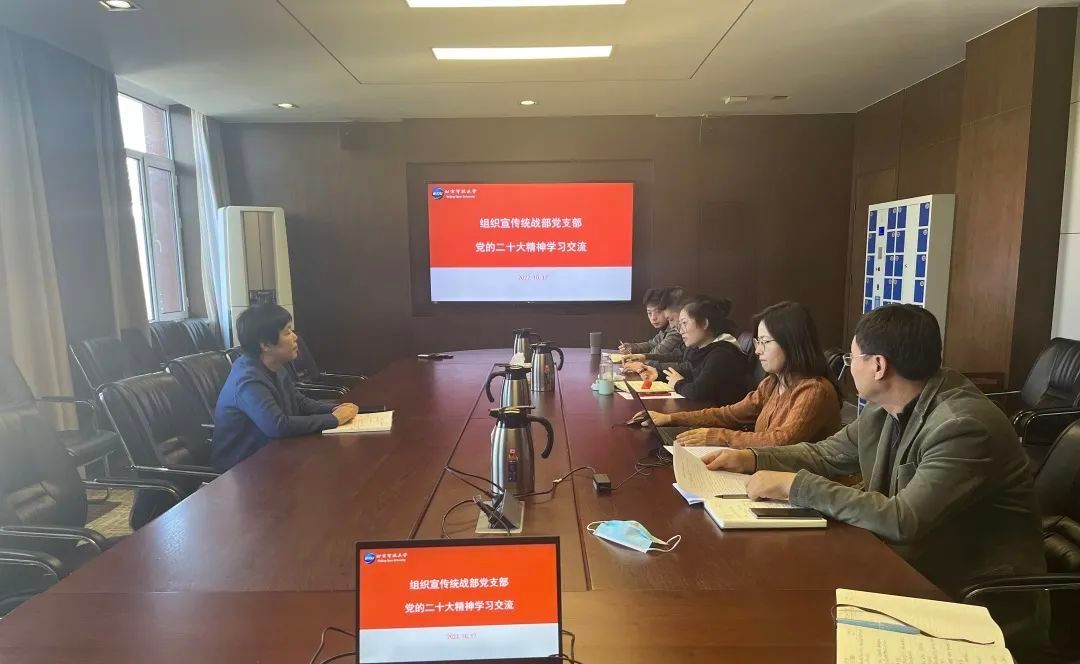 10月17日,组织宣传统战部党支部召开党的二十大精神学习交流会,学习党的二十大报告,交流思想、畅谈感悟,研究部署学习宣传和贯彻落实工作。