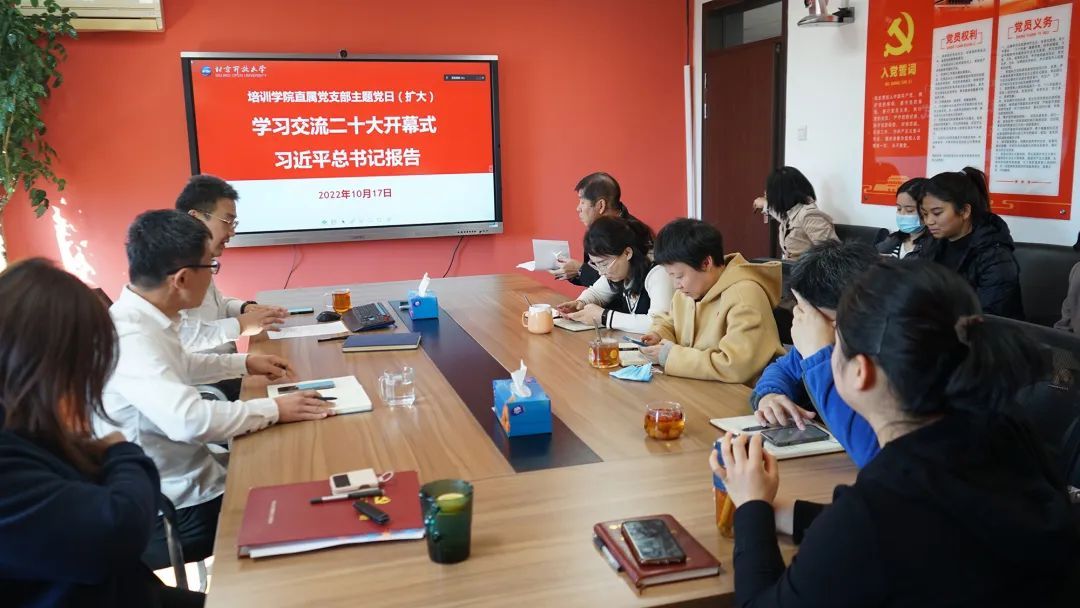 10月17日,培训学院直属党支部以“奋进新时代,担当新作为”为主题开展主题党日活动,集中学习交流习近平总书记在党的二十大开幕大会上的报告。