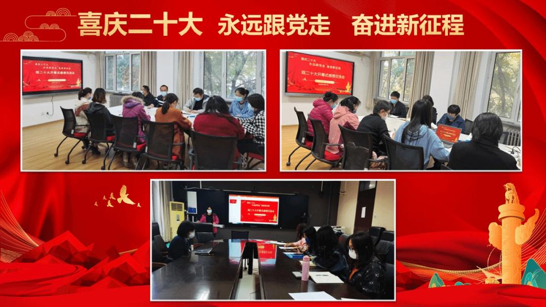 党的二十大正在进行时,华球平台各基层党组织按照学校党委部署要求,组织党员和教职工认真聆听、学习党的二十大报告,深入开展学习交流研讨,迅速掀起了学习宣传贯彻党的二十大精神热潮。