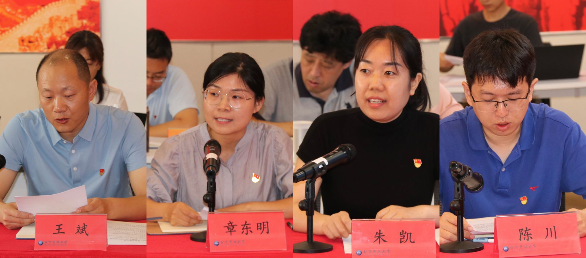 来自党政办公室、科学技术学院、网络与数字资源中心、财务处的四位青年党员分别分享了在党政管理、教学支持服务、教育教学等工作岗位上“承诺有声、践诺有行”,发挥党员先锋模范作用的认识和体会。