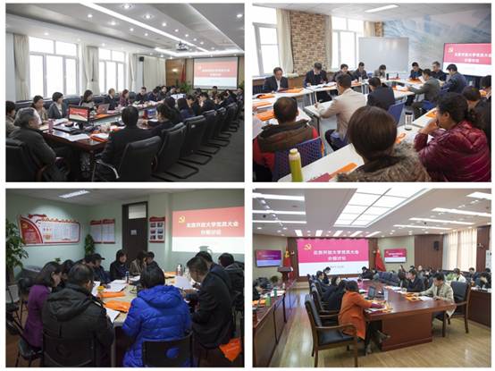 报告号召,广大教职工要继续发扬不怕困难、敢于拼搏的创业精神,锐意进取、求真务实,主动作为,不忘立德树人初心,牢记人才培养使命,齐心协力谋发展,众志成城创一流,紧紧围绕北京城市功能定位和《北京城市总体规划(2016年—2035年)》要求,服务京津冀协同发展和“一带一路”战略,深入推进各领域综合改革,确保学校发展与北京发展同向同行,让习近平新时代中国特色社会主义思想在学校服务首都学习型城市建设中落地生根、开花结果,形成生动实践!
