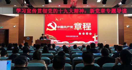 此次新党章导读学习会,是学校党委学习宣传贯彻党的十九大精神总体安排部署的重要组成部分。姜孔桥带领党员回顾了党章的发展历程,详细解读了新修订的《中国共产党章程》的基本框架、主要修改内容,要求党员深入学习贯彻党的十九大精神,深刻领会党章的精神实质。