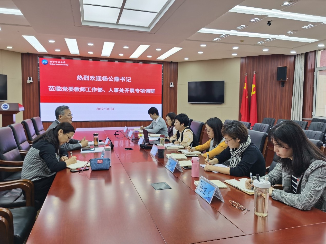 10月24日上午,党委书记杨公鼎到党委教师工作部、人事处开展“不忘初心、牢记使命”主题教育专题调研。本次调研主要聚焦于教师队伍建设问题。