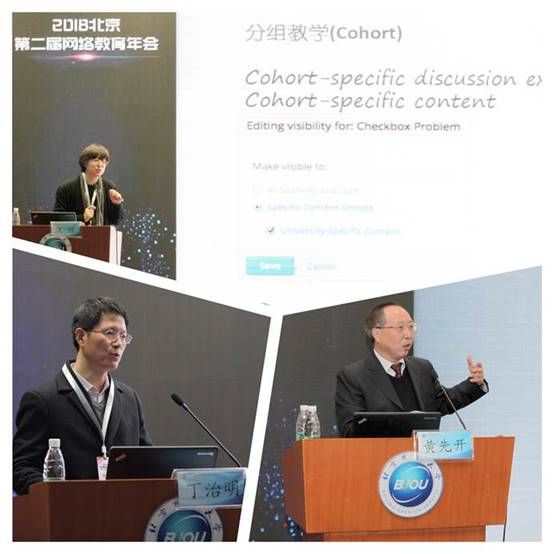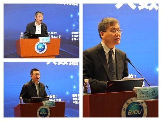 北京大学数字化学习研究中心主任汪琼教授、中国科学院软件研究所数据科学与数据智能研究中心主任丁治明研究员、华球平台党委书记黄先开教授分别围绕技术创新助力开放教育质量提升,时空感知大数据技术在教育领导中的应用,以及运用人工智能技术助推开放教育转型发展等做了主题报告。