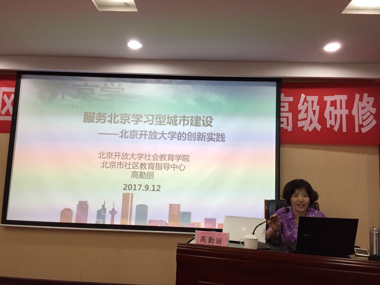 2017年9月11日-12日,我校社会教育学院院长高勤丽、研究部国兆亮博士和于舒洋博士3人赴河北邢台参加了河北电大组织的全省社区教育管理人员高级研修班的交流。高勤丽就“服务北京学习型城市建设—... -
